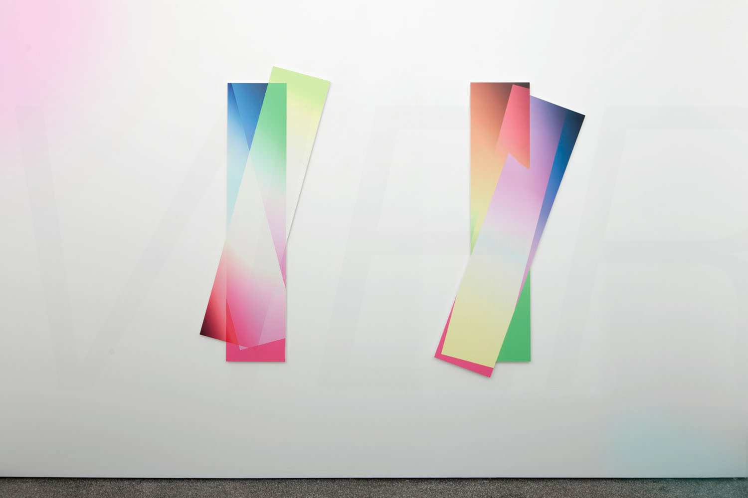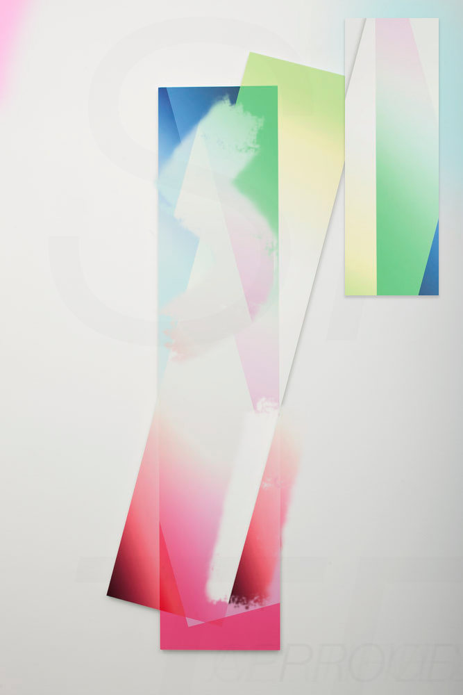 Each time the pieces are documented officially (i.e., by the artist or by a gallery), the documentation photos are altered to create a new form which does not accurately represent the physical object, and generate new derivative works that build upon the initial objects. The viewer's experience becomes split between the physical encounter in a gallery setting and the countless variations of the objects circulated in prints, publications, and on the Internet. The documentation becomes a separate work in itself, incorporating elements of collage, techniques commonly used in professional image retouching, aestheticized digital watermarks, and more.
